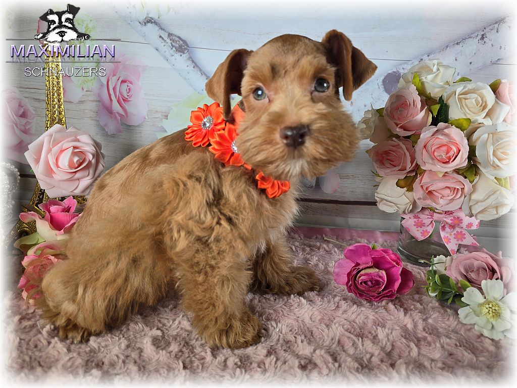 GUARDIAN PARENTS NEEDED!! Maximilian’s 4th Generation Daughter of Paris & Schnucks She is a black/rust color and carries the Wheaten Gene. Her Temperament is sweet and playful. She loves belly rubs and follows us where ever we are. From the moment she was born I knew she would be my Keeper. This girl is very special to me because I lost her famous daddy Schnucks in 2022, 1 month before she was born. She will carry on her daddy’s bloodline but there is only one Schnucks and we miss him dearly. I can’t wait to see what she will produce when she is old enough in 2024 |
