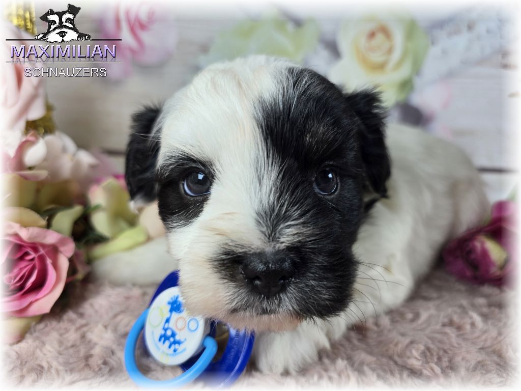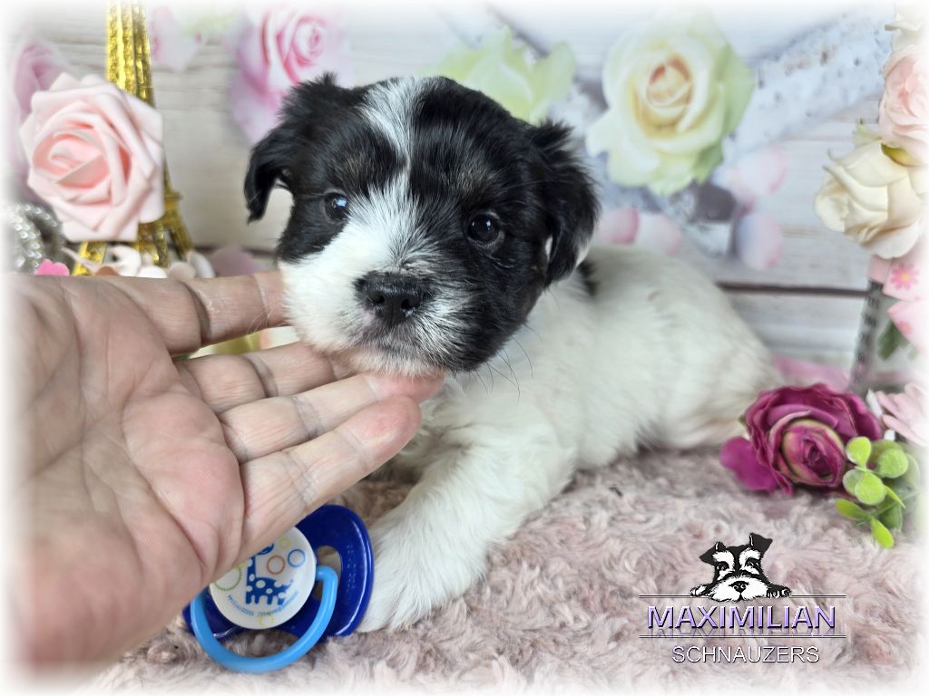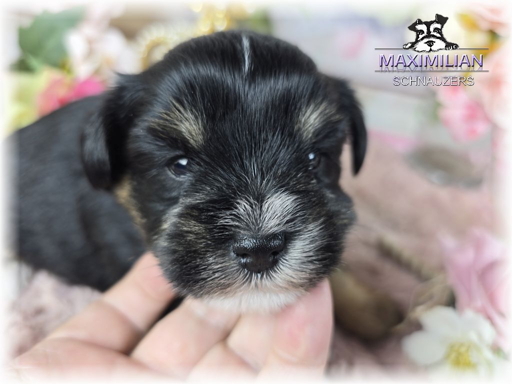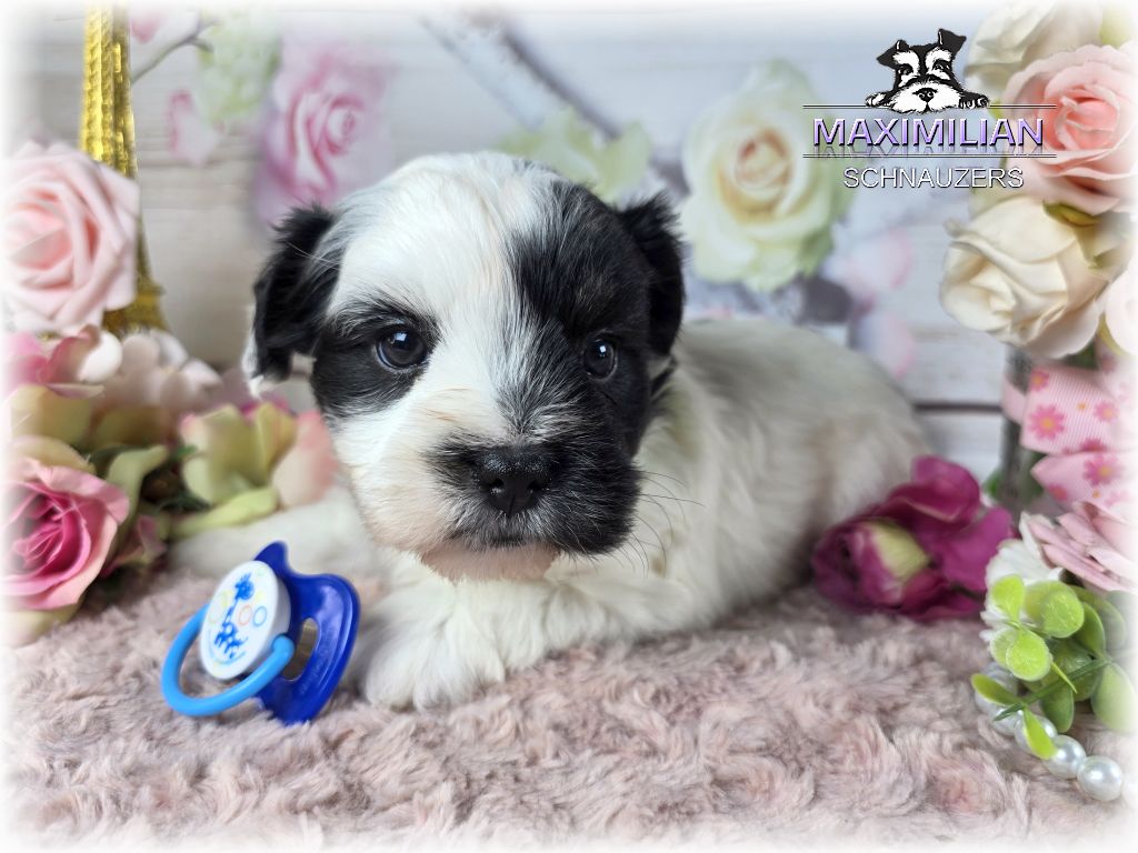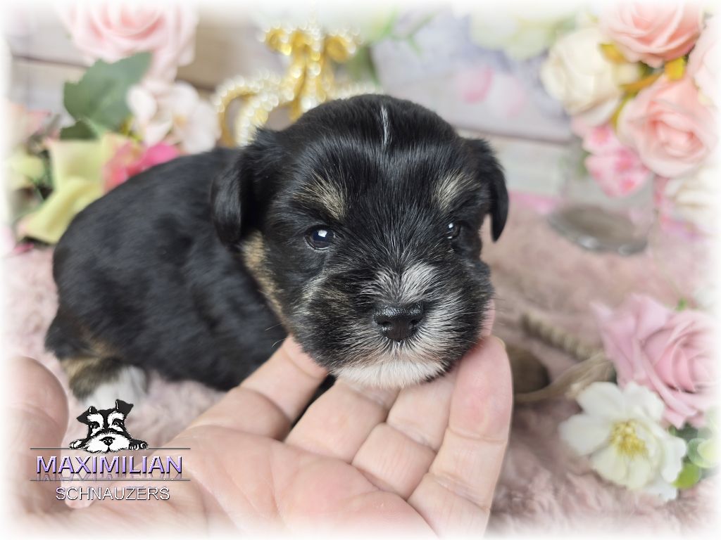 Black/Silver Parti “Schnenchie”. Will mature at around 15 lbs. $600