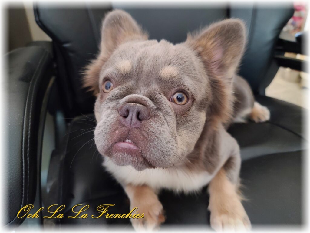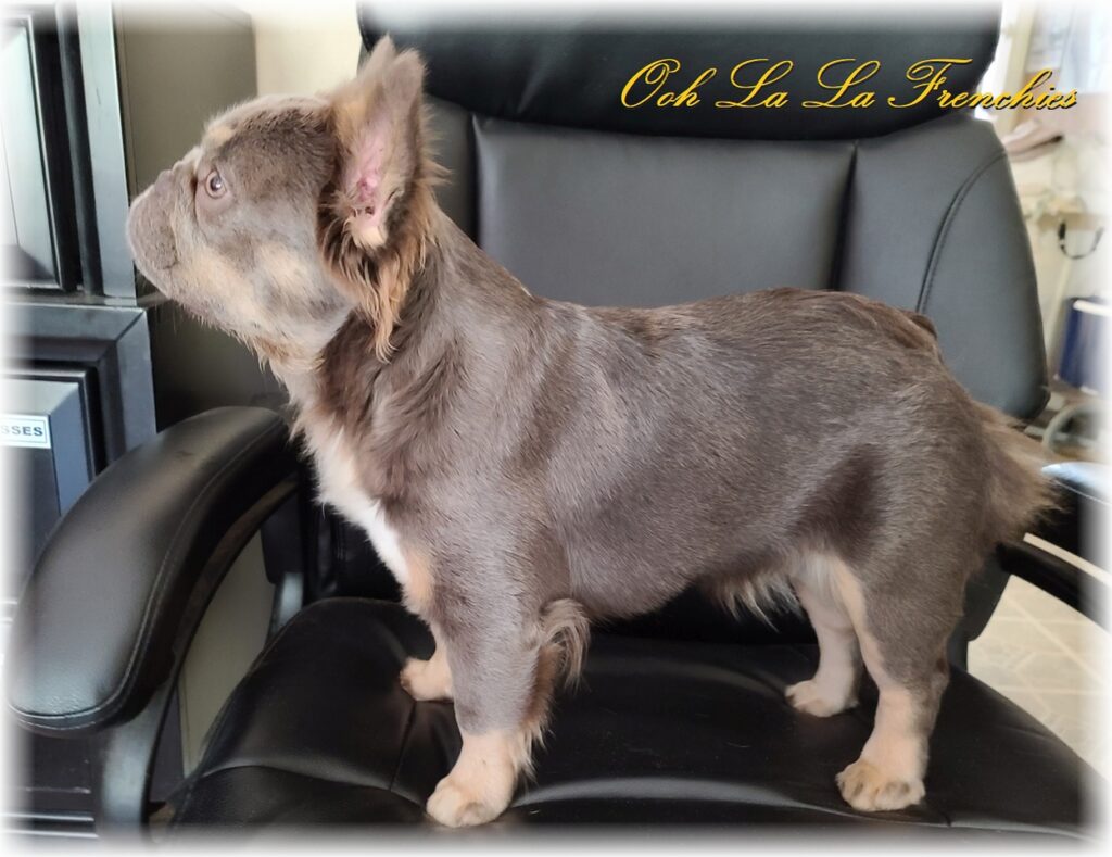 | Lilac/Tan, Fluffy Coated Frenchie, 18 lbs | Black/Silver Parti, Mega Coated, 10 lbs |