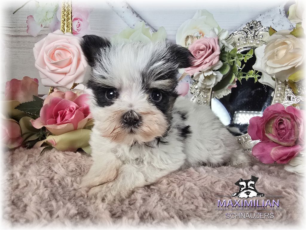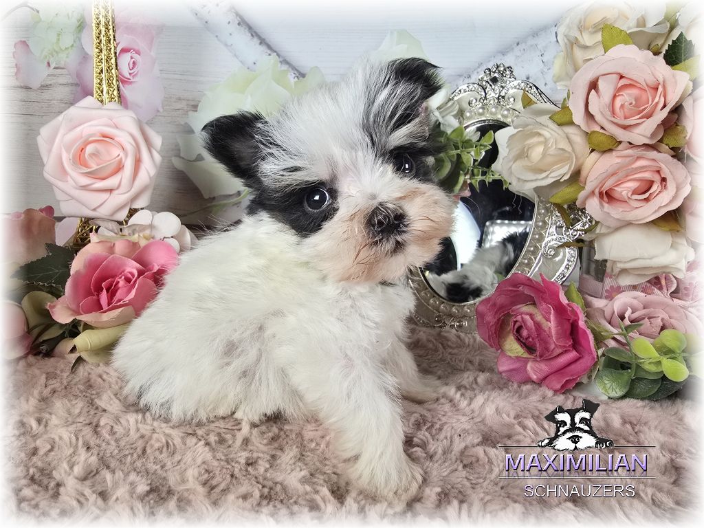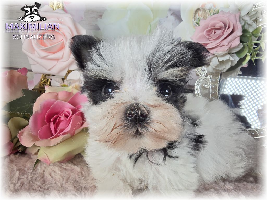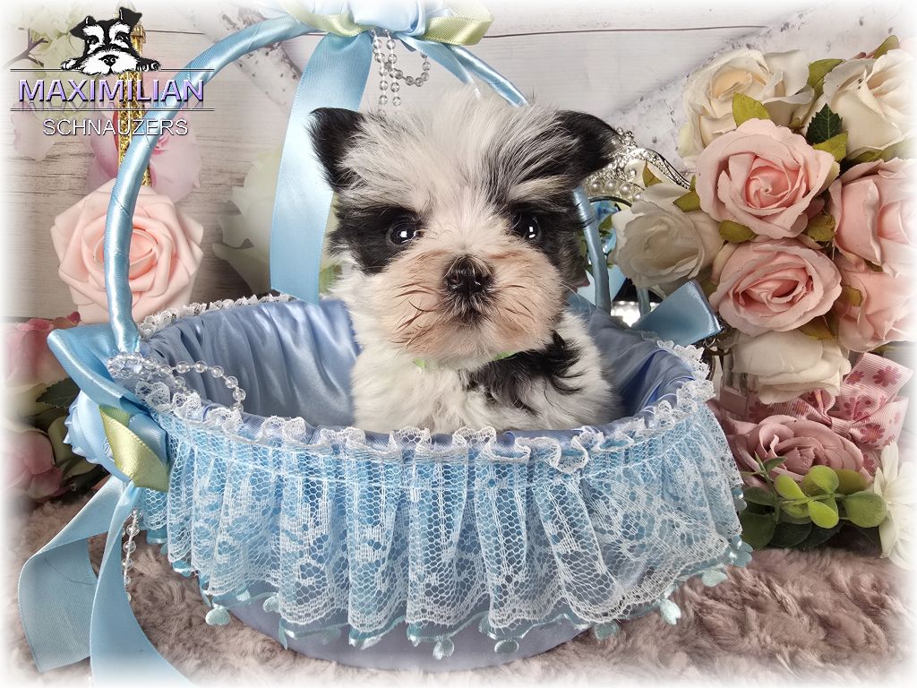 Black/Silver Parti, Mega Coated, Micro Teacup Size. Will mature at only 3 to 4 lbs