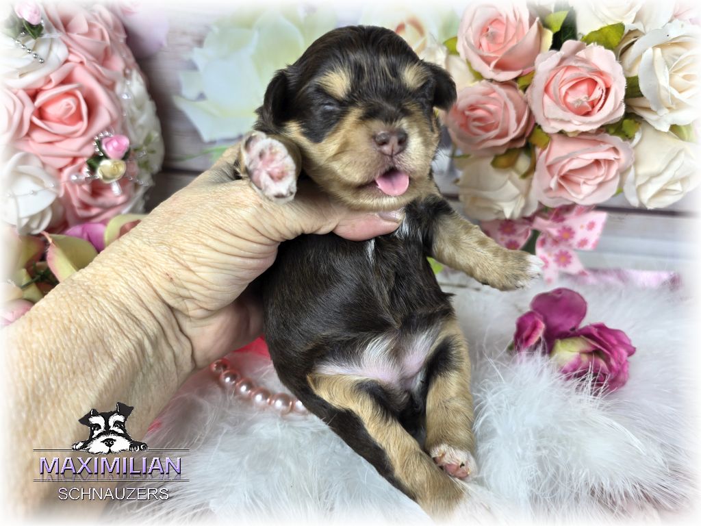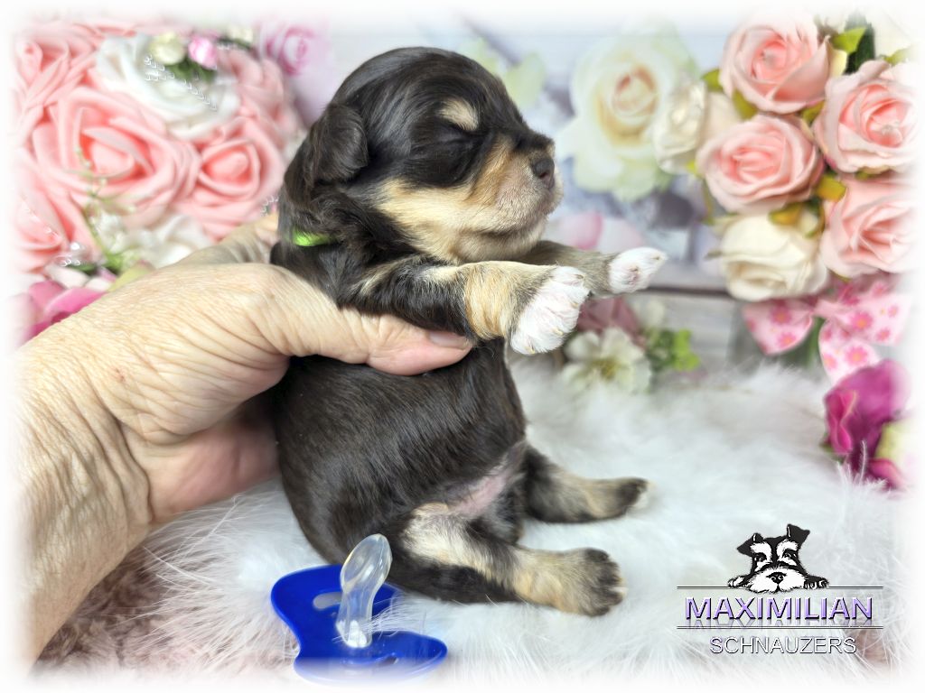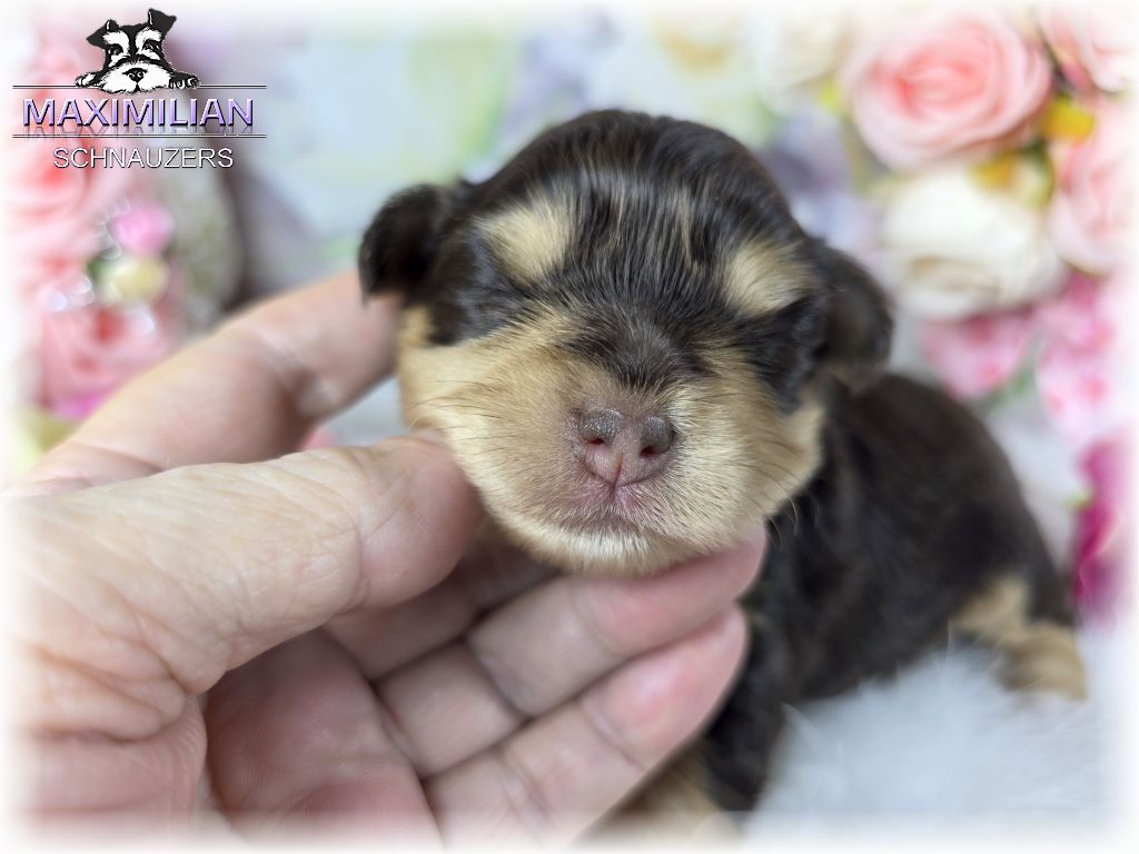 Black/Silver Parti “Schnenchie”. Will mature at around 15 lbs. $600